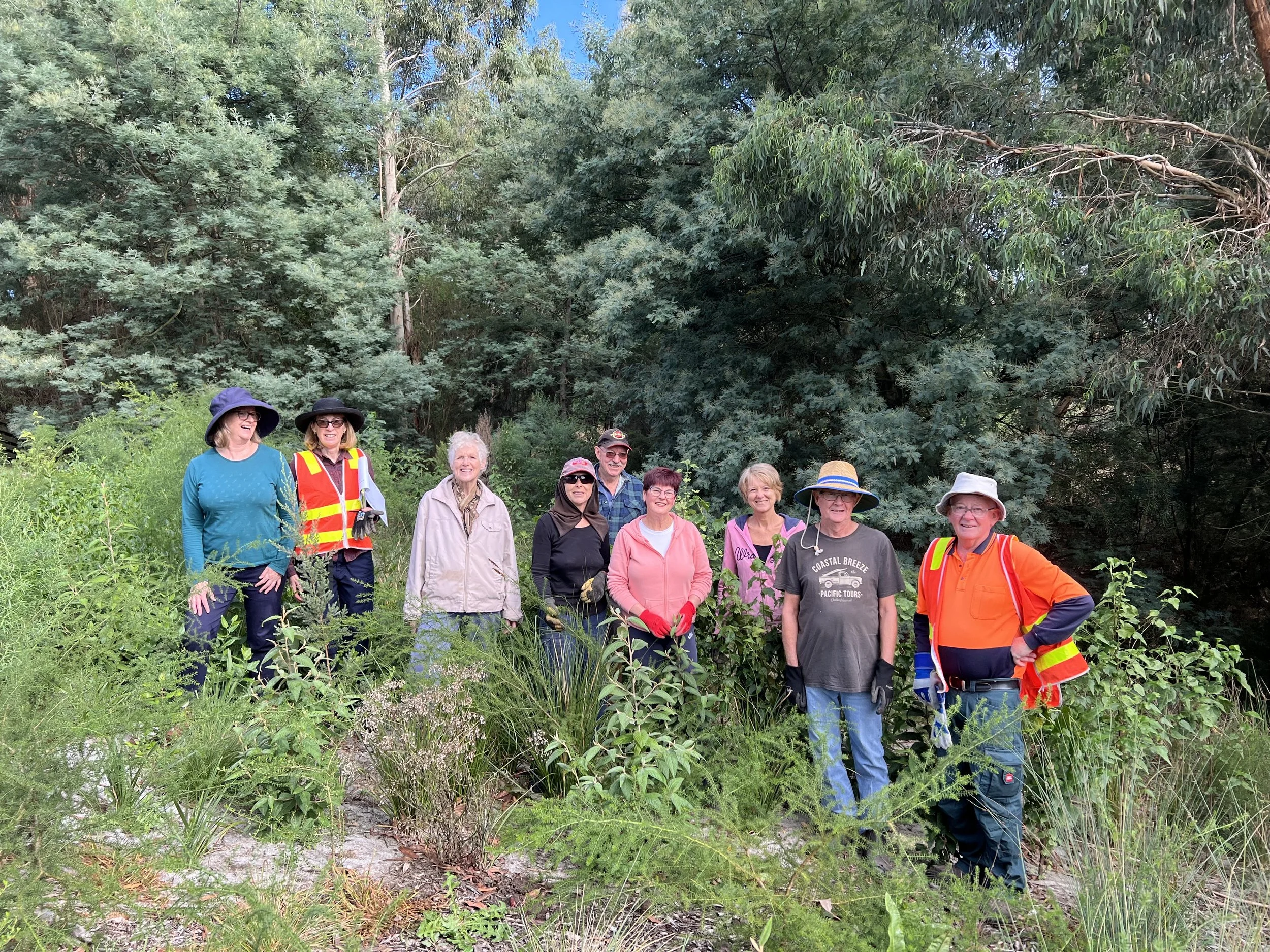 Woodford Reserve is hidden away at the end of Woodford Place, Korumburra. It is planted out with indigenous plants in the headwaters and along the creek’s banks. A large planting day was organised by KLG in collaboration with SGSC. This initiative was sparked by a suggestion to KLG by Lillian from the Friends group and our then President, Melynda Dawson, swung into action. By the end of 2022, well over 2,000 additional plants sourced from KLG and SGSC, have enhanced the area. Streamside species will protect the banks of the creek that are prone to flash flooding and work has continued downstream broadening the corridor of local ground cover, under and mid story plant species.