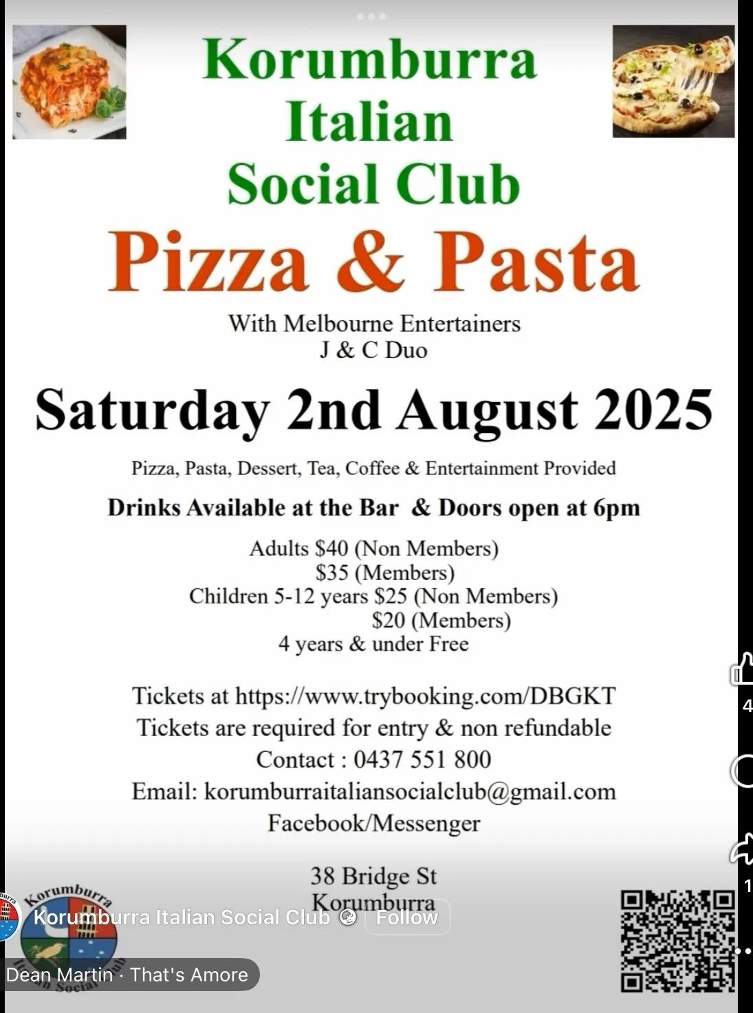 Pasta night is back at the Korumburra Italian Social Club - now with trivia and games!